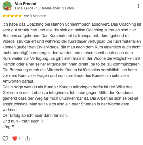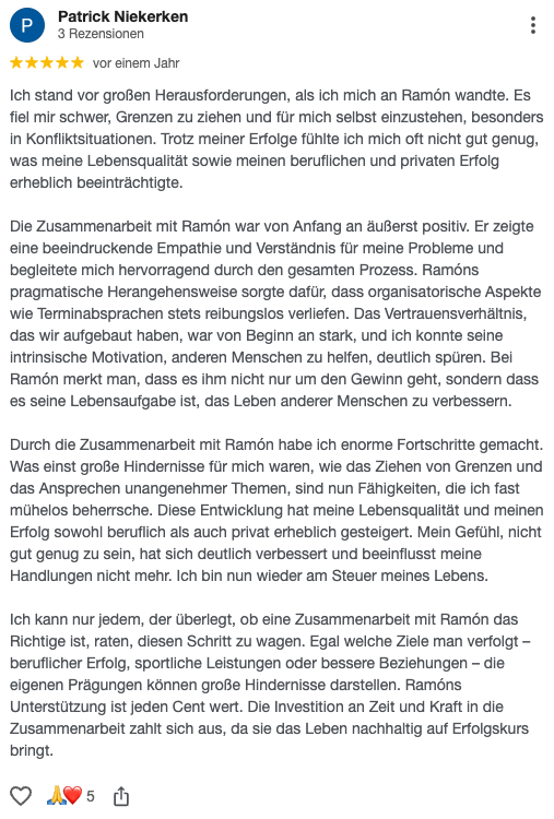 So kannst die für DICH richtige Entscheidung treffen, ob du von Ramón auf dem Weg zu deinem Ziel begleitet werden willst. Wir freuen uns darauf, dir zu helfen.